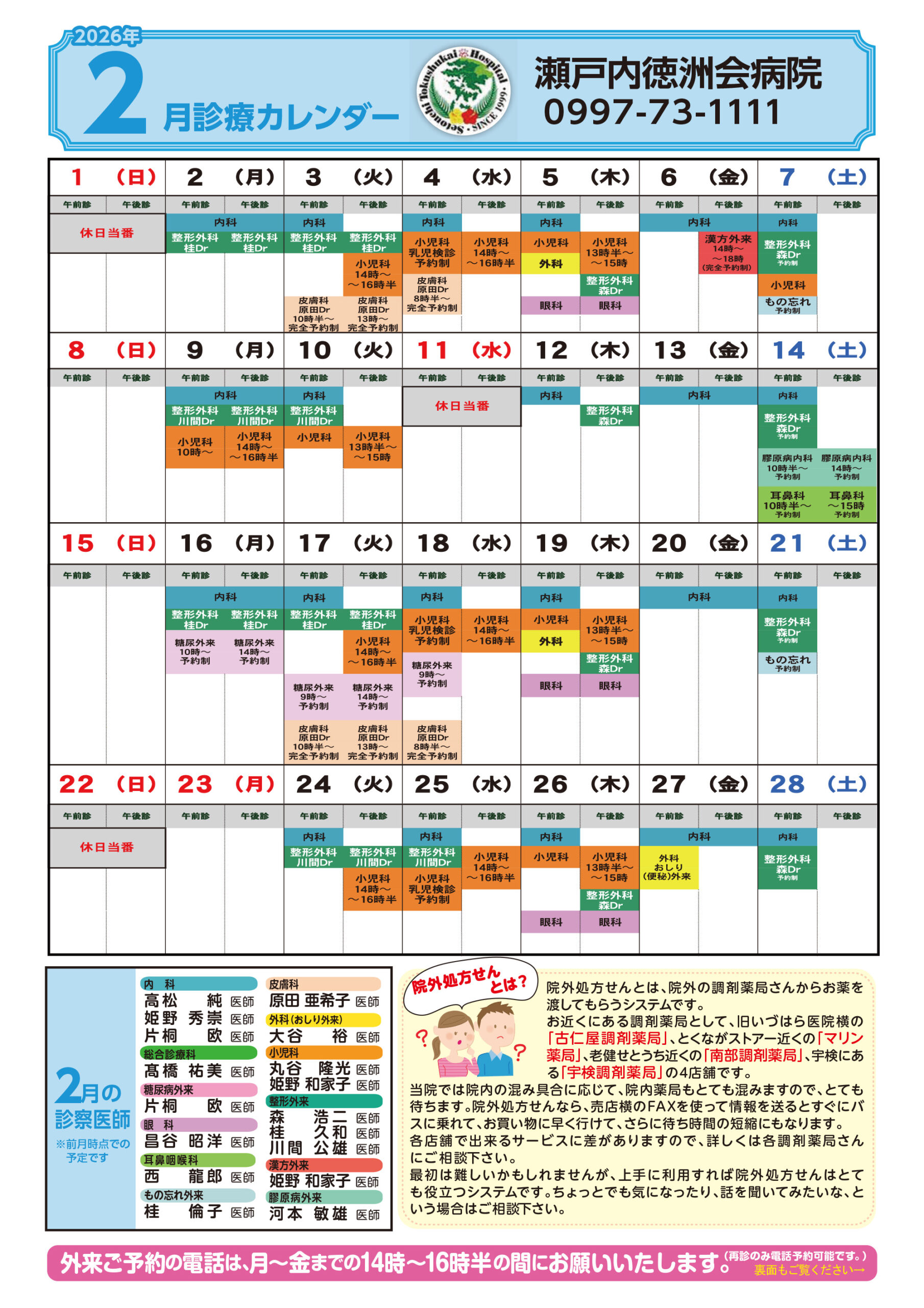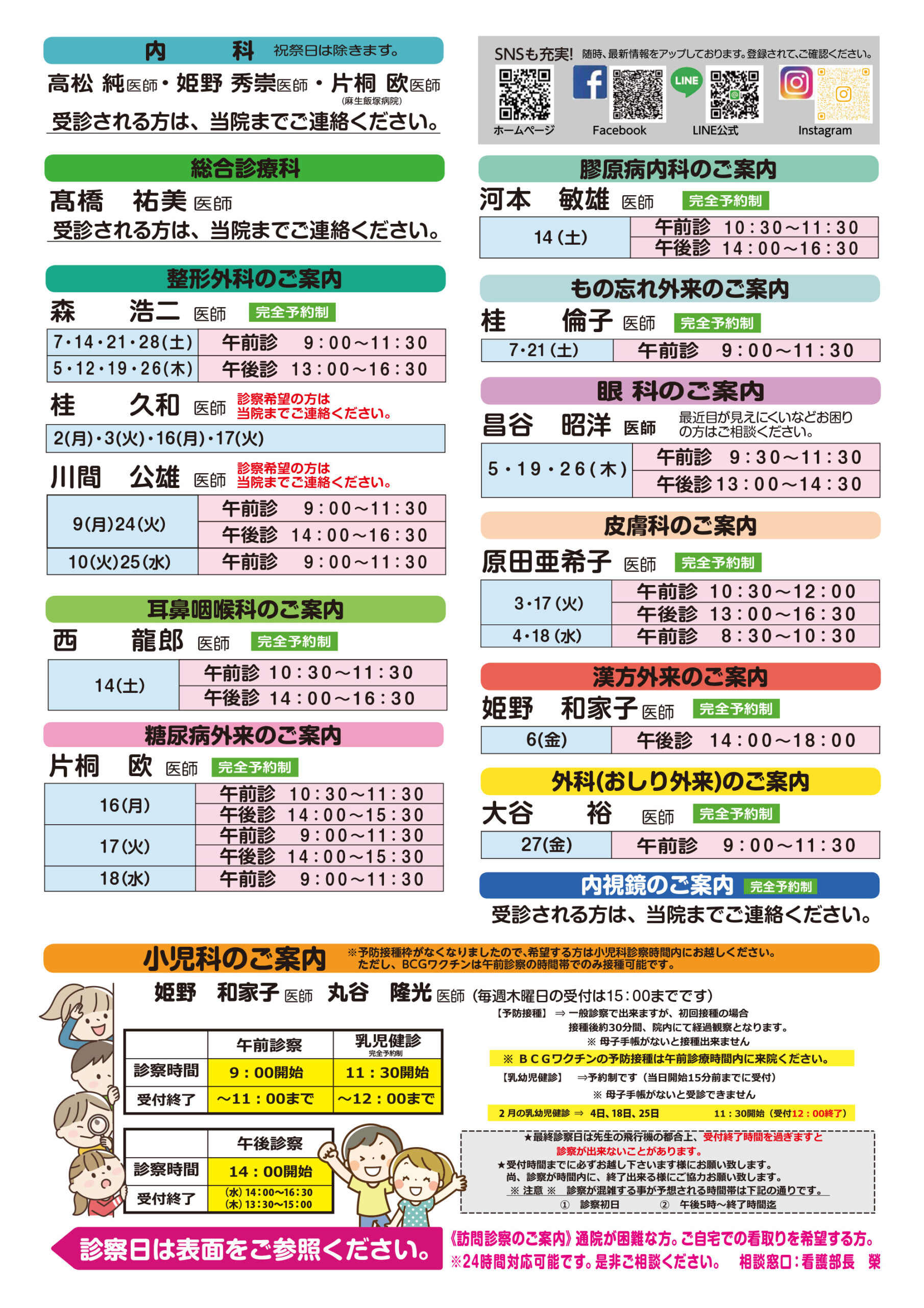 (特診は診察予定表をご参照ください。)